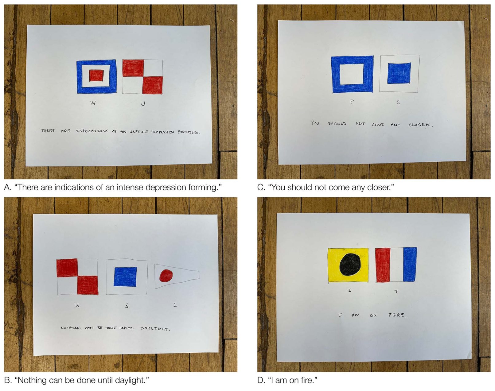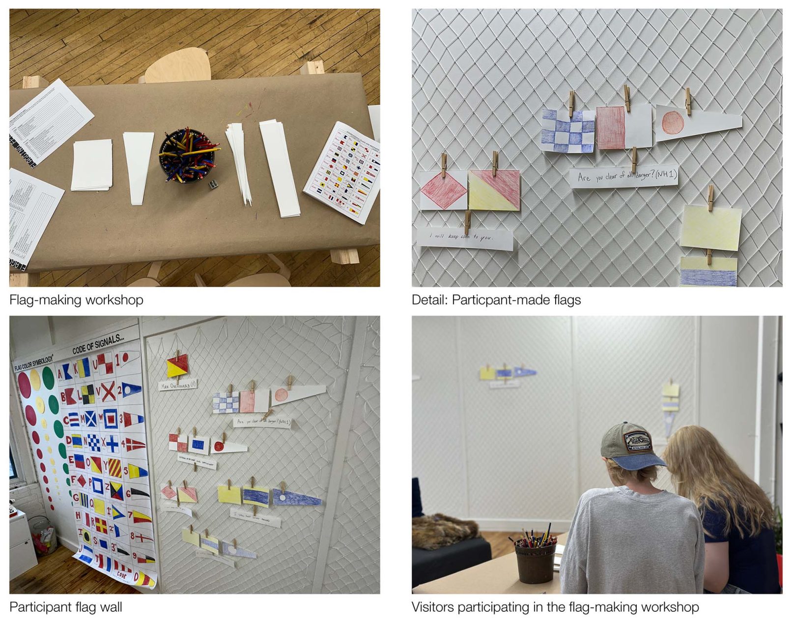 Finally, the work includes a participatory element, inviting audiences to make their own flag-based messages using the ICS. This gives voice to the community’s unheard thoughts and feelings through this simple and elegant coded symbology.
