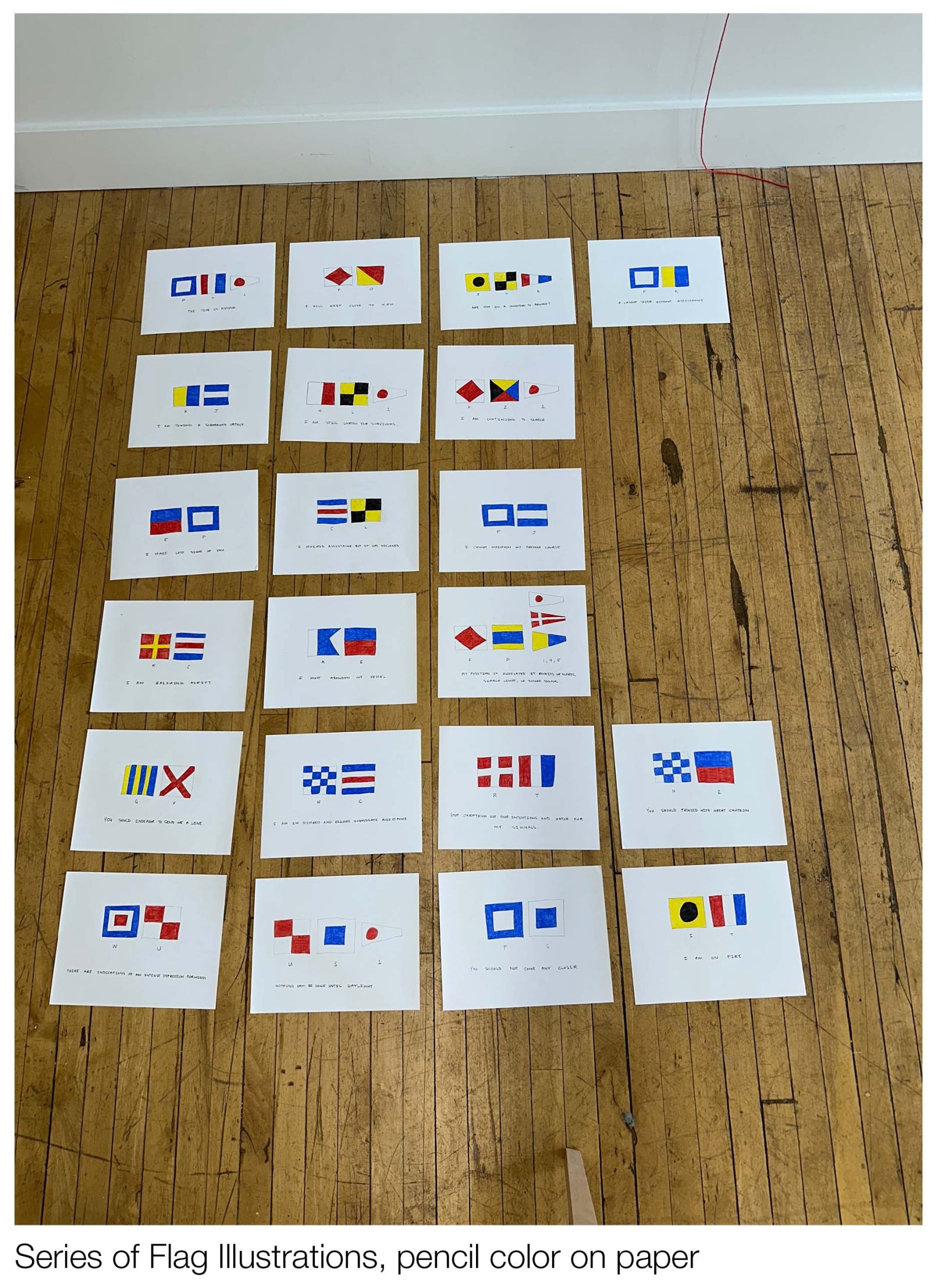 Signaling Through Silence (working title) is an interdisciplinary body of work (in-progress) that translates the language of maritime communication into an evocative system of movement, material, and gesture. Drawing from the International Code of Signals (ICS) and semaphore flag signaling, the project uses crochet, drawing, performance, and participatory practices to explore situations where people are silenced and we must find other ways to communicate our trauma.