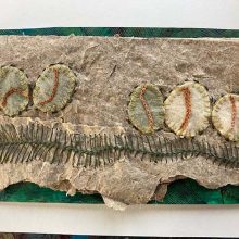 These mixed media pieces represent stages of a silk moth’s life.